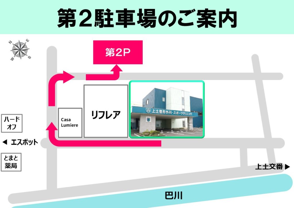 クリニック敷地内の駐車場が満車の場合は、裏手にございます【第2駐車場】をご利用ください。