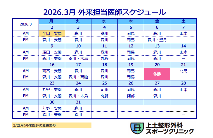 | 午後 | 14:30〜18:00 (診察開始15:00) | ● | ● | ● | ● | ● | - | - |